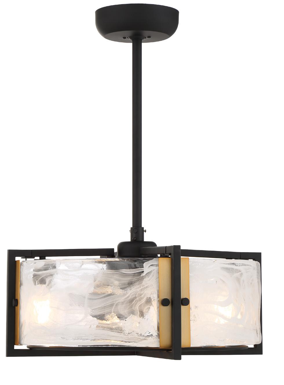 Swirling, mesmerizing strie piastra glass frames the lights within the Hayward. The matte black frames showcase warm brass accents for another dimension of style. Hayward is also available as a Fan D’Lier, truly uniting the best of a chandelier and the best of a ceiling fan.