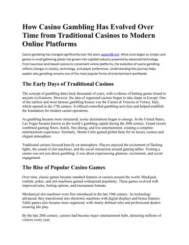 Time from Traditional Casinos to Modern Online Platforms