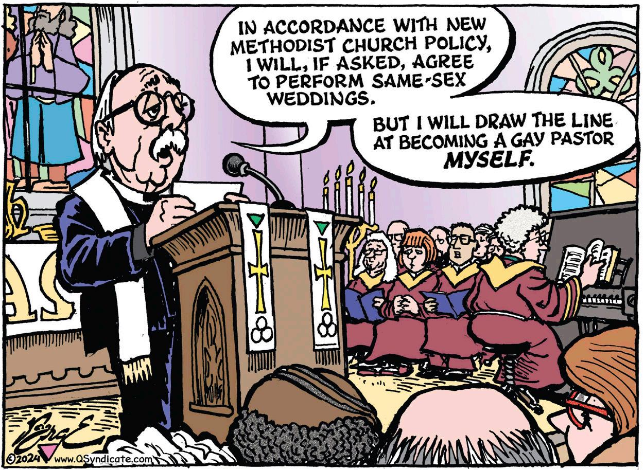 The 40-year ban on gay clergy by the United Methodist Church has been overturned by the church’s top legislative body. A split by UMC congregations disagreeing with the decision has been threatened for some years, but has been avoided so far. The vote was 692–51 as