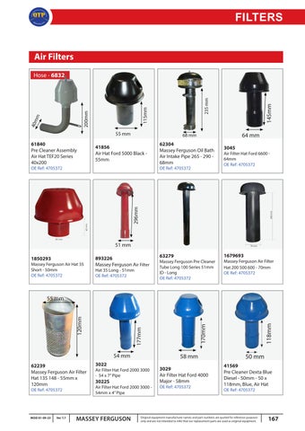 54 mm 62239 Massey Ferguson Air Filter Hat 135 148 - 55mm x 120mm OE Ref: 4705372