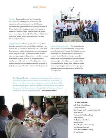 Persprijs De persjury koos voor Takis Panagakis die met commis Samantha Bijsterveld de elementen uit de natuur rond de Oosterschelde mixte met Zuid-Europese ingrediënten. Hun gerecht ‘Eb en vloed’ bestond onder meer uit Oosterscheldekreeft, witte asperges, yuzu, groene plantjes en zeewier uit Zeeland en Griekse kritharaki-pasta. In de persjury namen zitting uitgever Herlinda De Clerck (Passion HI) en culinair redacteuren Stefanie van der Maas (Little Spoon) en Astrid Schreuders (AstridsTaste). Slag op de Schelde De Slag op de Schelde werd op 18 mei gehouden aan boord van het schip de Adriana tijdens een 6 uur