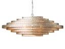 Decoratieve lamp van opengewerkt metaal, In ambachtelijk brons of zilver Met 9 licht en en een onderspot.