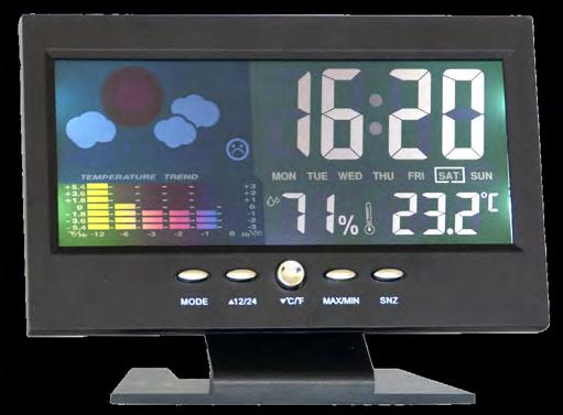 Clock features a large, easy-to-read 12/24-hour clock, ideal for those with poor eyesight. The bright display shows temperature in °C or °F, relative humidity, and barometric forecasts with intuitive graphics for rain, cloudy, sunny, and more. Perfect for your bedside or office, it includes an alarm with a snooze function to keep you on schedule. Powered by USB cable included or 2 x AAA batteries (not incl.).