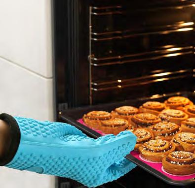 Tea towels and fabric oven mitts limit dexterity and heat transfers to your hands way too fast. Silicone Oven Glove gives you a strong grip on hot pan handles, cake tins, baking trays and heavy casseroles. The outer silicone layer is waterproof and insulates against extreme temps to 200ºC… you can even pull eggs from boiling water without scalding your hands!