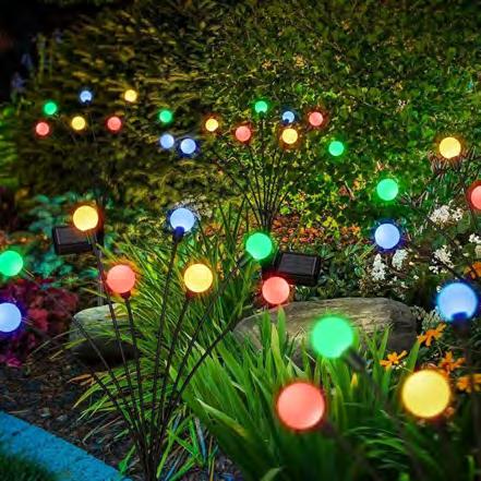 creating a lively dance of light and movement. Stake them into the ground, or join multiple sets to craft a captivating, carpet-like glow that enchants every night. Supplied in two packs (choose from colour changing, or warm white), each stake includes 8 LED bulbs and measures approx. 66cm high including ground spikes. They’re the perfect way to add charm and sparkle to your outdoor space. State colour when ordering.