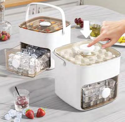 Ice Making Box maintains supply of up to 96 cubes for refreshing drinks, soothing ice packs, or serving fresh seafood at Christmas! Simply fill the trays and press the top button to release into the drawer below – no twisting, spilling or mess. The compact 16x16x14cm unit only uses the shelf space of a regular tray, while protecting ice from debris, and odours. Enjot the output of an electrical ice maker without the bulk or power bills!