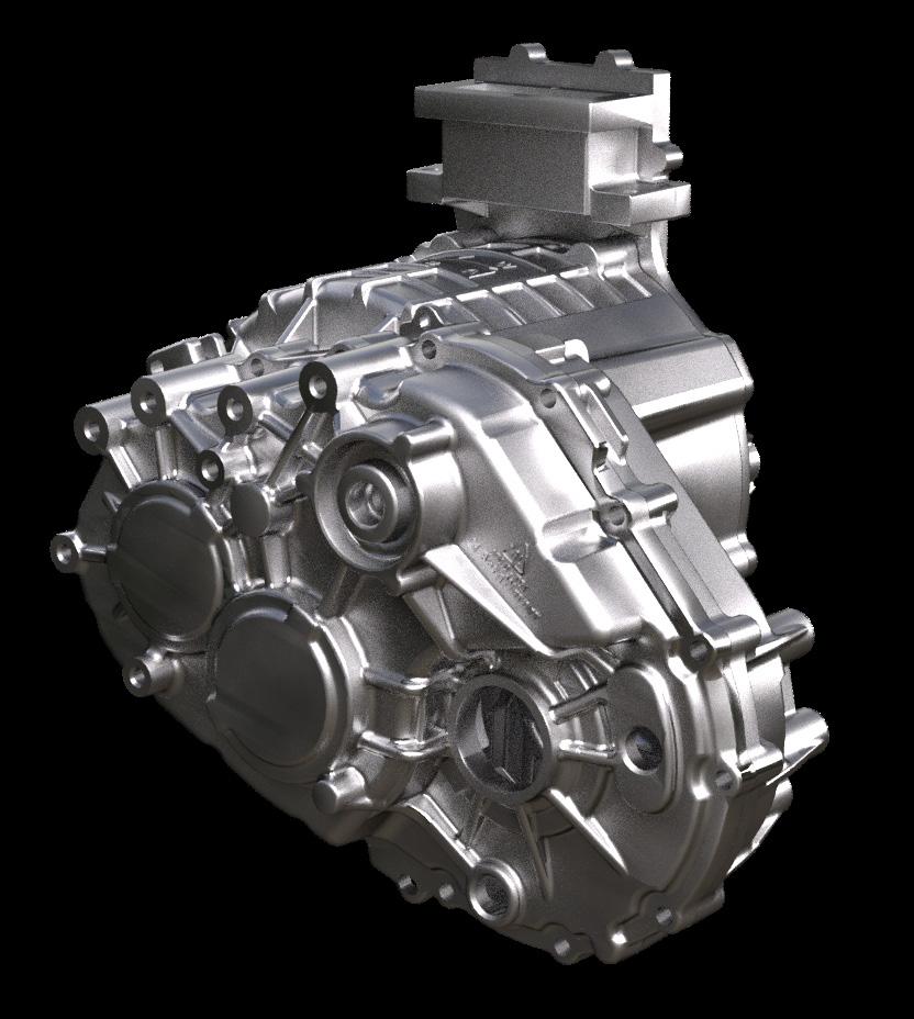 The e-motor housing is a complex aluminum component that is either die casted or formed, machined through milling, drilling, reaming, and then cleaned.