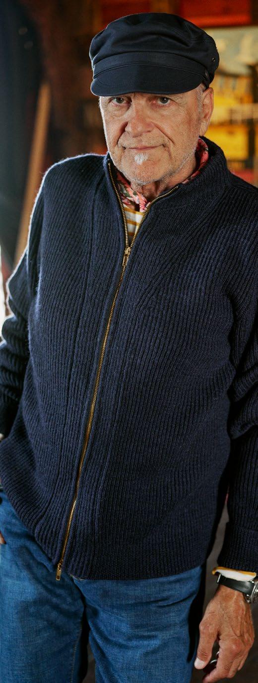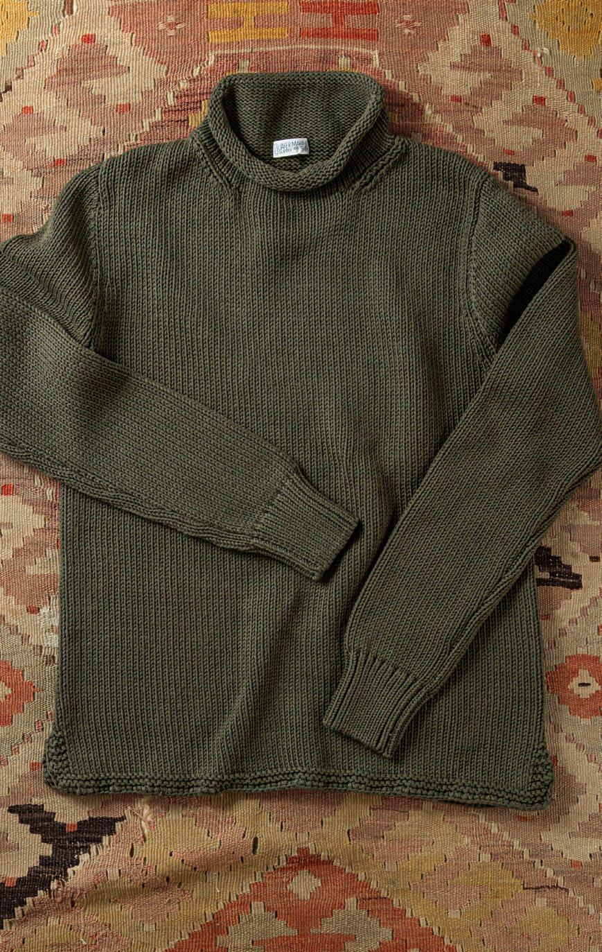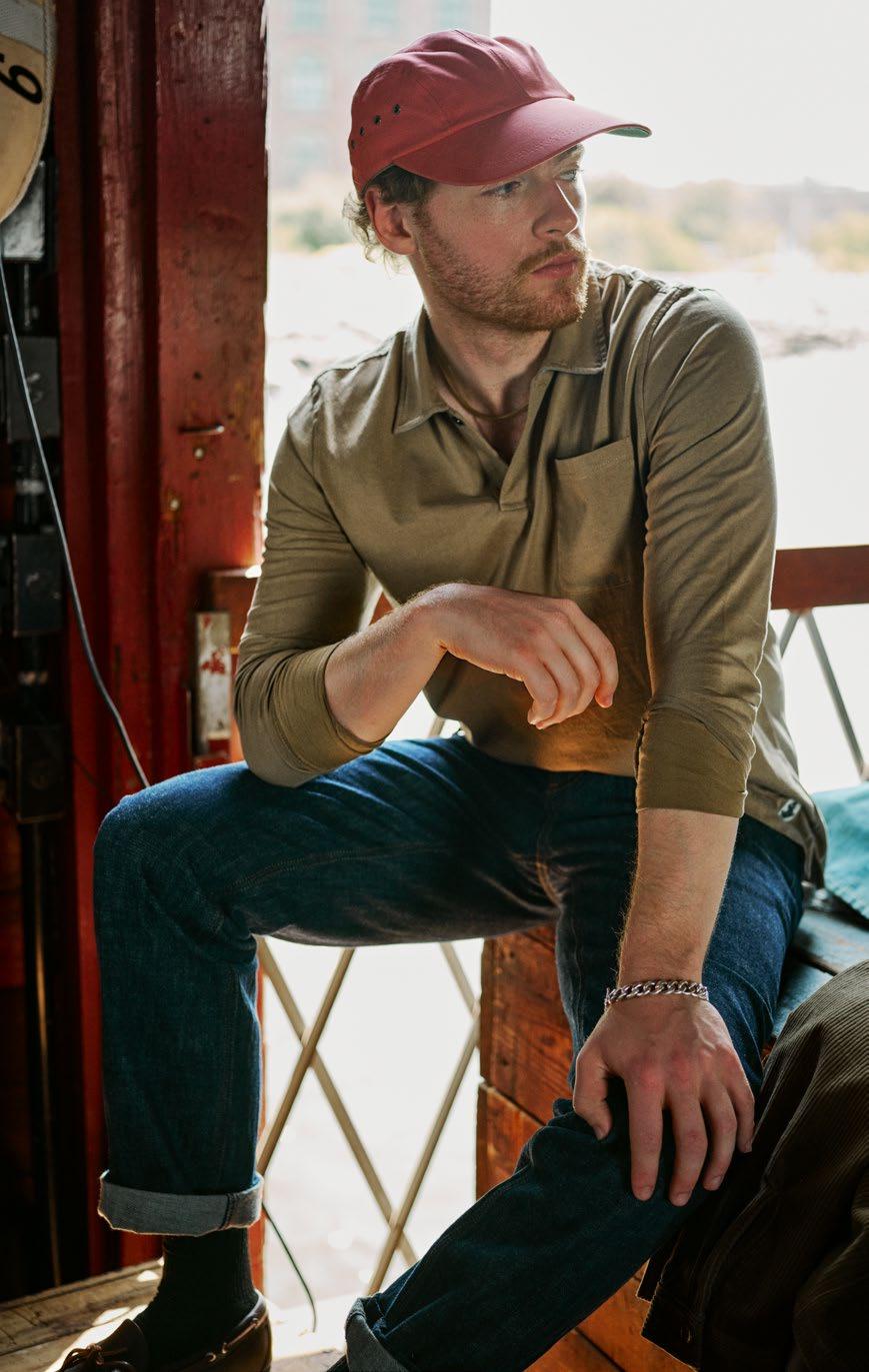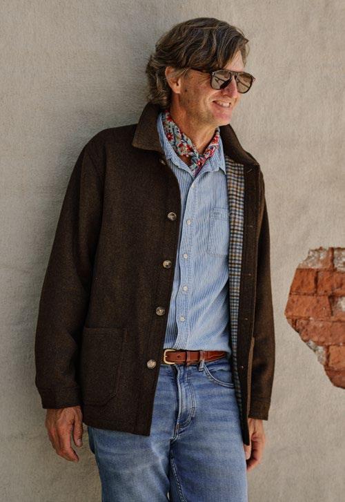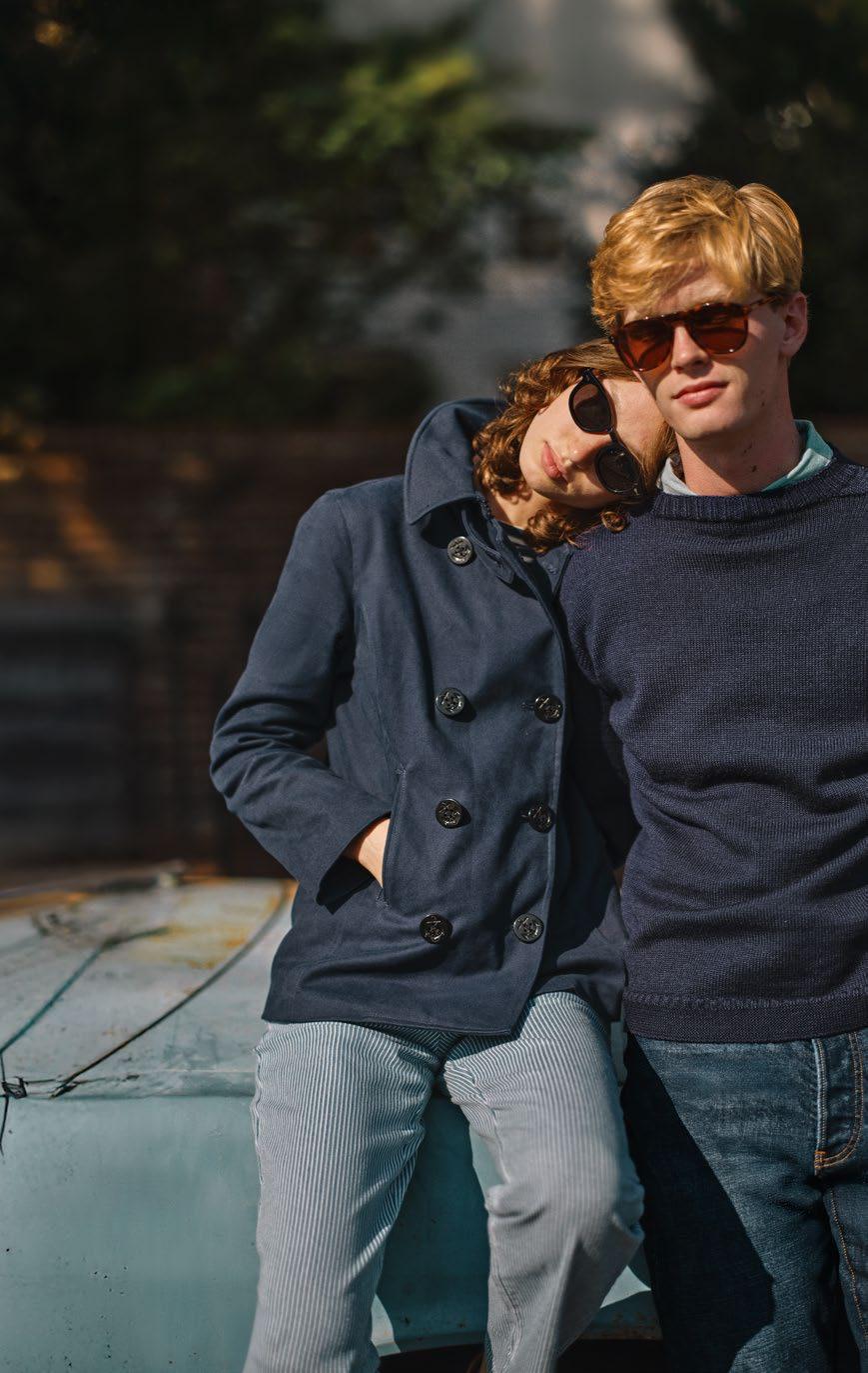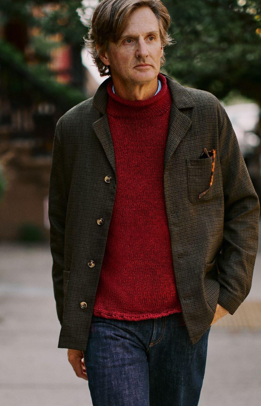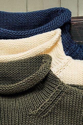 left page, on him: Fisherman’s Sweater in Cranberry Mix $158,