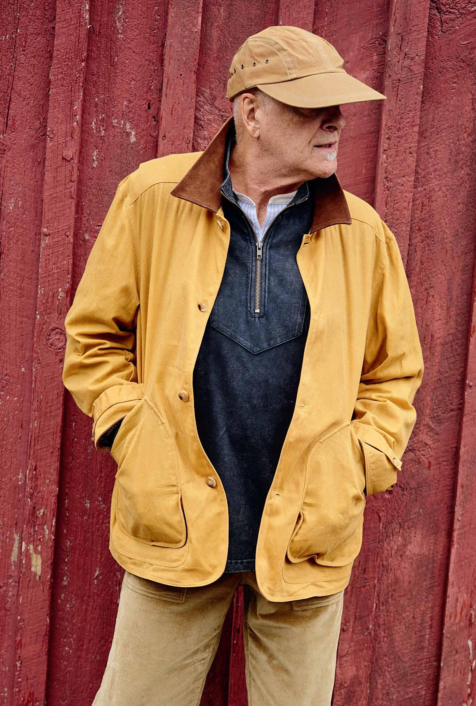 this page, on him: Gamekeeper Jacket in Goldenrod $278, Saltwashed Sconset 1/4