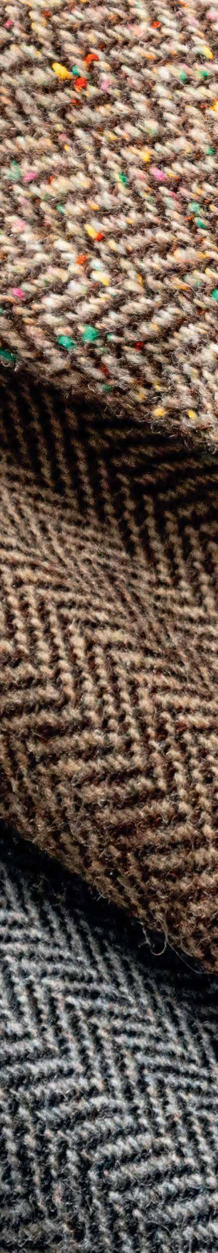 left page, on him: Loafer Jacket in Chestnut Herringbone $348, Moleskin MacArthur Shirt in Chamois $148. this page, from top: Loafer Jacket $348 in Camel Donegal, Chestnut Herringbone, Grey Herringbone, and Navy Heather Herringbone.