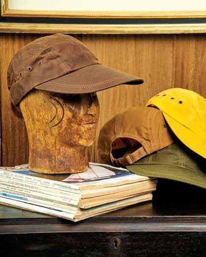 this page, on right in Brown, Yellow, Acorn, and Olive Waxed Canvas. below Oysterman Cap in Natural $58.