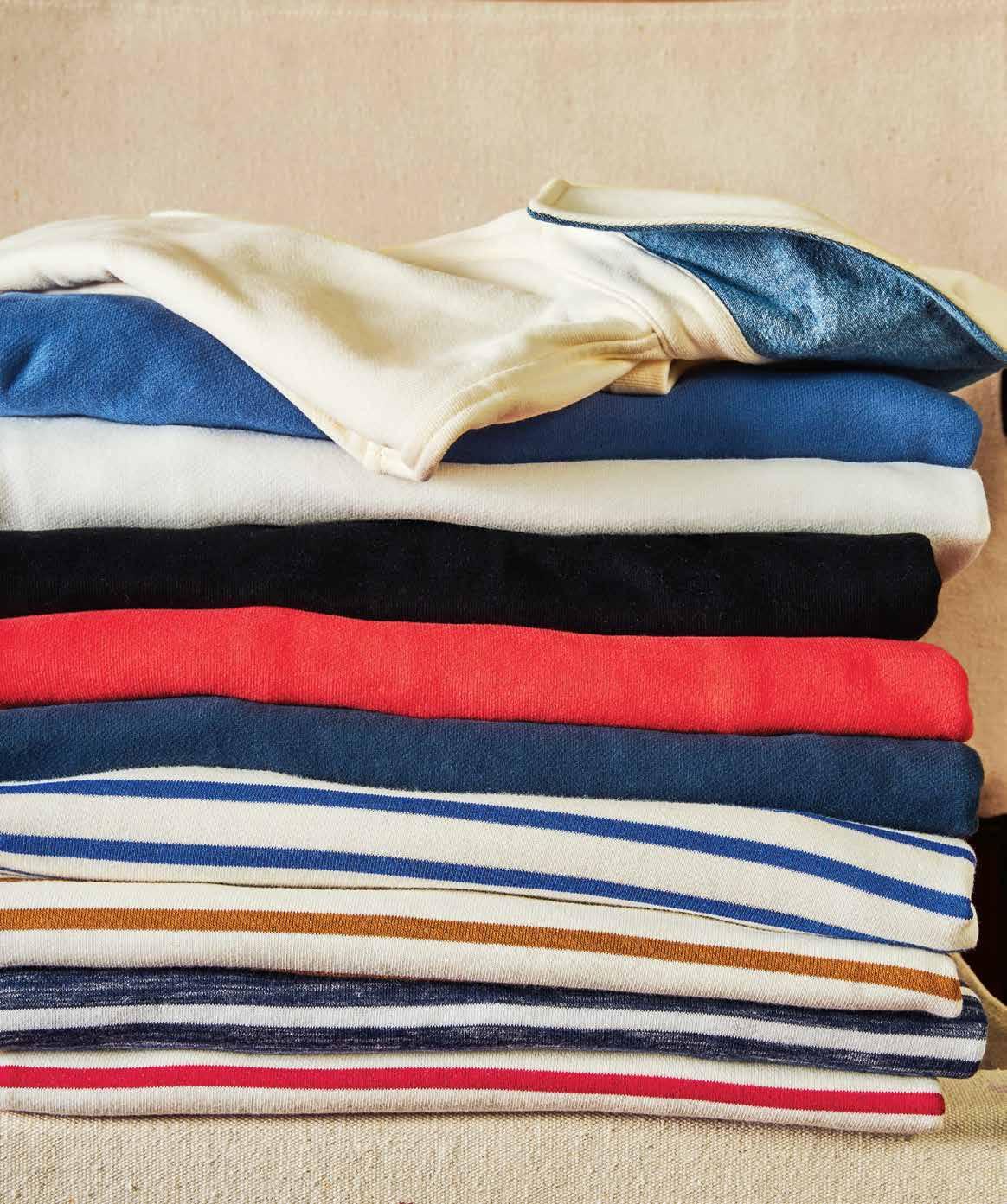 come from Japanese mills. That’s why our favorite chore shirt now comes in a limited run of Japanese slub cotton fabrics. Layer it with our newly perfected boatneck tee, inspired by the iconic nautical uniform. Available in a range of colors.
