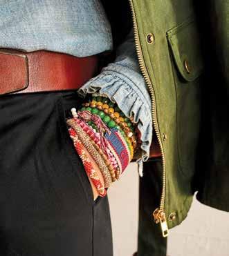 on him French Workman’s Jacket in Khaki $210. Men’s Breton Stripe Boatneck Tee in Off White/Navy $88. 2” Bridle Leather Belt in Oak Bark $118. Oysterman Cap in Navy $58.