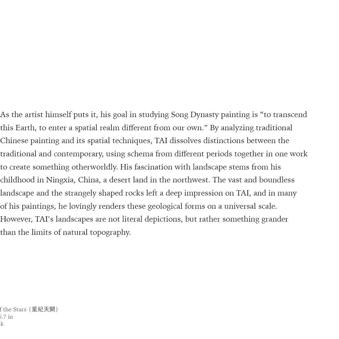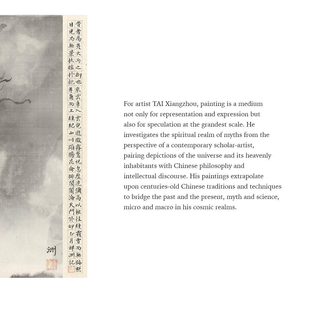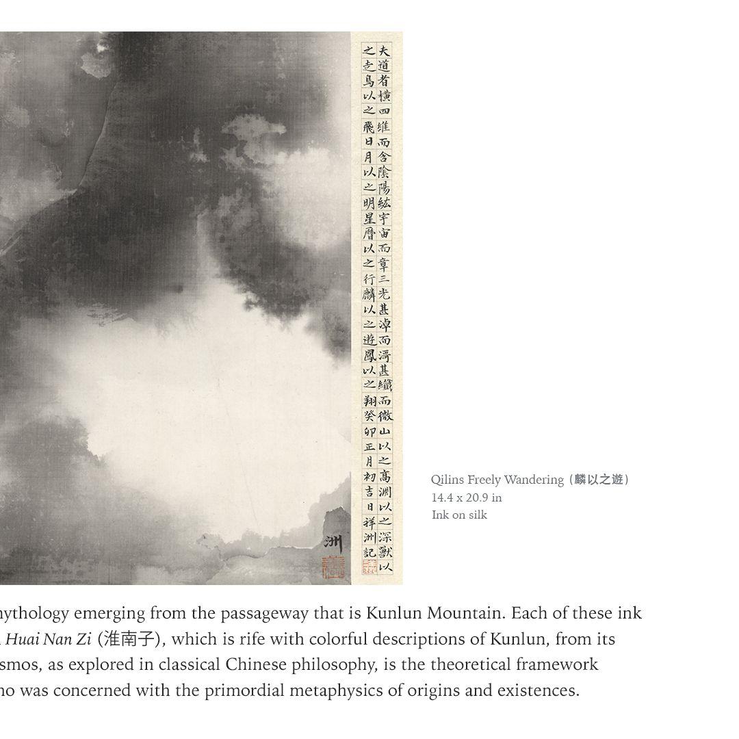 Qualia Contemporary Art is pleased to present Kunlun Mountain, an exhibition of works by Chinese artist TAI Xiangzhou. The artist’s first solo exhibition on the West Coast will feature a new body of work that manifests, in ink on silk and on paper, his lifestyle as a contemporary scholar-artist and its accompanying practices. TAI’s illustrated meditations on both natural and supernatural forms epitomize the metaphysical threads from past to present, ancient to contemporary, and heaven to earth. The exhibition also features the artist’s first experiments with incorporating color into his practice, as well as his unique rendition of the San Francisco Asian Art Museum’s beloved bronze mascot, “Ritual vessel in the shape of a rhinoceros”, dedicated to the Bay Area community. Kunlun Mountain will be open to the public from July 19 – September 8, 2023, with an opening celebration hosted on July 23 from 4:30-6:30 PM PST.