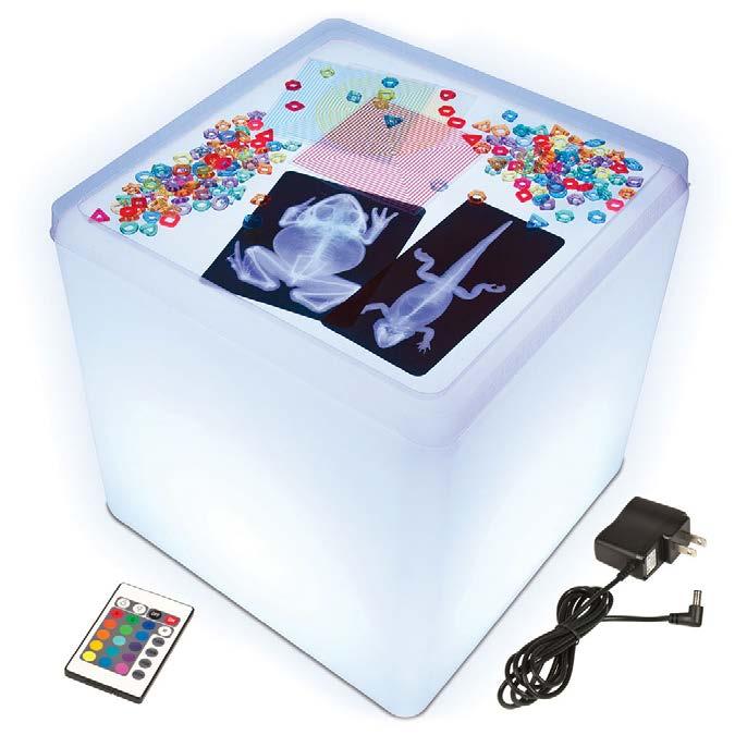 Portable, durable and rechargeable. Perfect for enduring years of use with an easy-to-clean surface and a long-lasting LED light source. When it comes to light cube activities, the possibilities are endless. Measures 40 cm L x 40 cm W x 40 cm H (16” L x 16” W x 16” H)”. Ages 3+