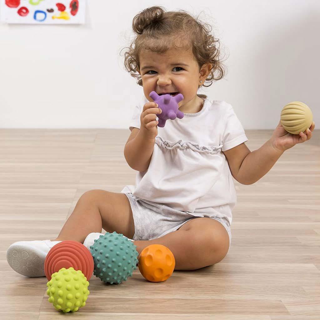 Children don’t need much guidance when it comes to sensory balls. You’ll find them often teething, squeezing, and holding these sensory balls as it helps soothe and comfort them. Their different colors and textures enhance sensory stimulation - both tactile and visual – and contribute to the development of children’s motor skills.