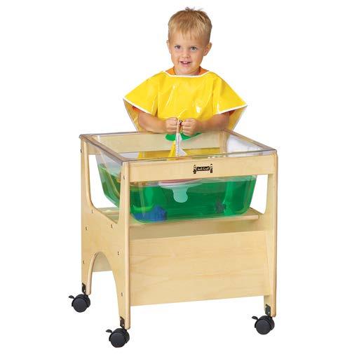 Encourages sensory exploration, scientific experimentation and dramatic play. A secure, stepped drain at the bottom of the table makes it easy to switch between sensory elements. With convenient handles and a secure lid, the table can be easily moved between indoor and outdoor environments. Measures 90 cm W x 64 cm D x 48-63 cm H (35” W x 25” D x 19”-25” H). Ages 18 months+ 210480