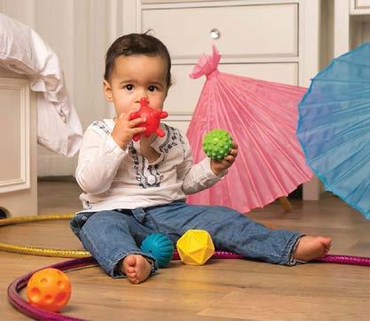 Brightly colored tactile balls bring soothing relief to little gums at every teething phase and also invite babies to grasp them, roll them, and crawl after them. Ages 6 months+