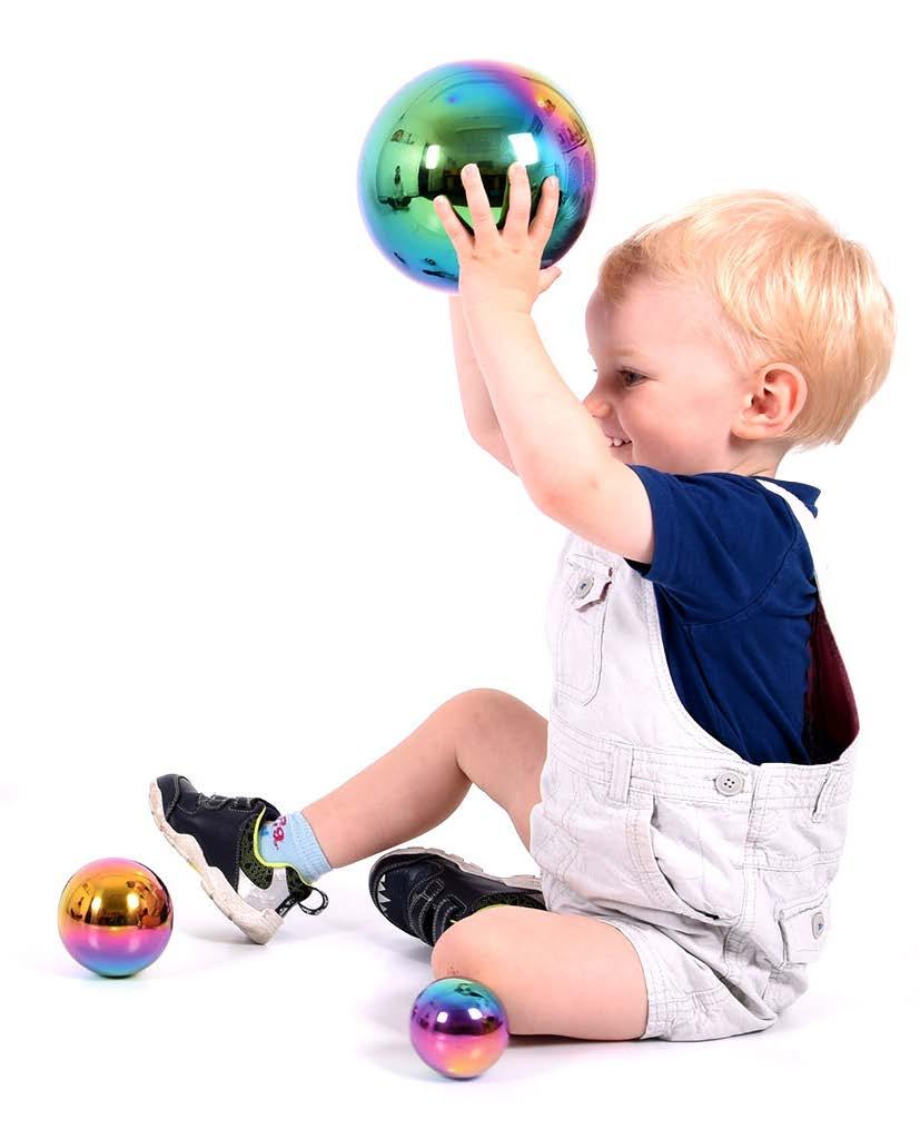 The shiny mirror surface provides a fascinating distorted fisheye lens reflection. These beautiful, smooth tactile balls are made from hard wearing stainless steel, robustly constructed without being too heavy for young children. Indoor or outdoor use. Includes 6 cm (2-5/16”), 8 cm (31/8”), 10 cm (4”) and 15 cm (6”) Diam. balls. Set of 4. All ages