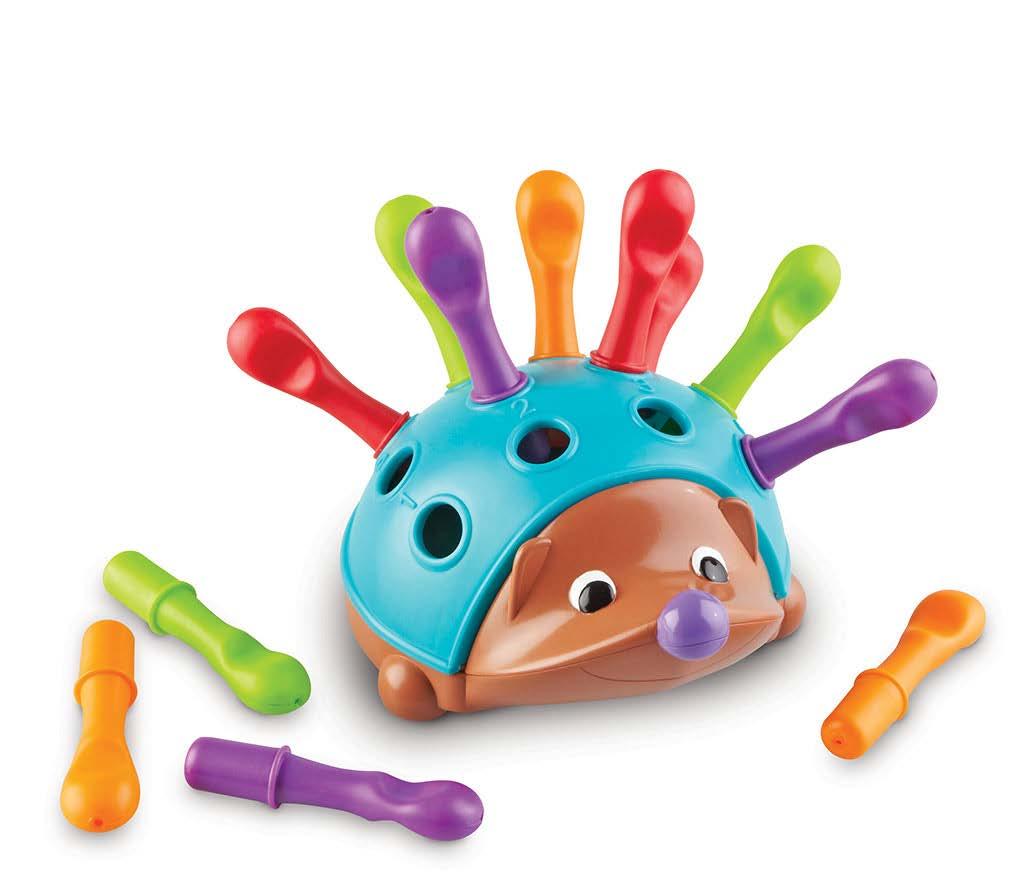 Help kids develop fine motor skills as they replace the chunky, peg-shaped “quills” within the holes that dot the smiling hedgehog’s back. Each piece is made of plastic that can be easily wiped clean and the quills stow snugly inside the hedgehog’s body. Ages 18 months+