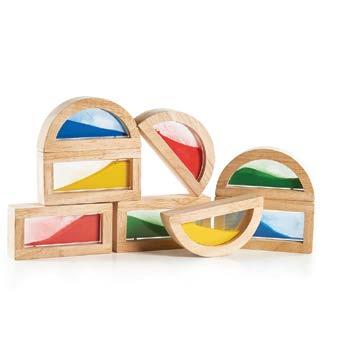 The combination of smooth hardwood exterior and the brightly coloured sensory centre makes a fascinating component with a multitude of educational possibilities. Includes 8 Crystal Bead Blocks, 8 Sand Blocks and 8 Shimmering Water Blocks. Standard unit block measurements.add Rectangle measures 7cm x 3.5cm x 14cm. Ages 2+ 204994 24 pieces