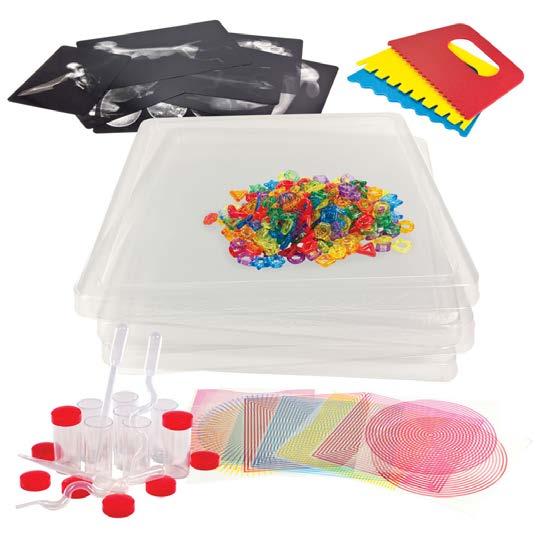 The perfect light table starter kit for younger students, with lots of safe and colourful materials to play on the light cube. The teacher guide provides detailed descriptions of fun light table projects. Includes 5 clear plastic trays that fit snugly on the Educational Light Cube, counting and stringing rings, 12 optical illusion sheets, 2 paint pipettes, 2 squiggle pipettes, 8 clear vials, 3 paint scrapers, 8 animal x-rays and a teacher guide. Ages 3+