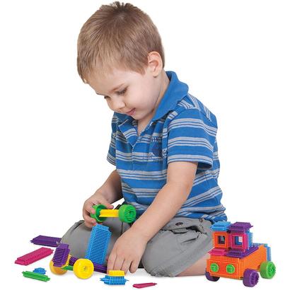These unique flexible and soft bristle blocks interlock when pushed together and stay attached until they are pulled apart