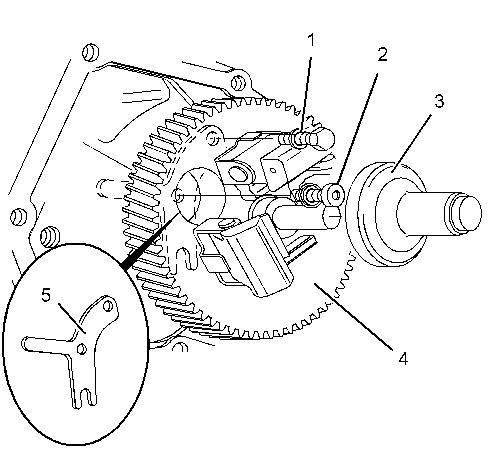 5. Rotate camshaft gear (4) to align the access hole in the camshaft gear with the hole for fastener (2).