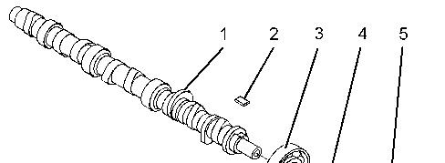 2. Remove spacer (4) and woodruff key (2) from camshaft (1).