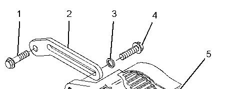 4. Remove bolt (2) and washer (3) from alternator (5).
