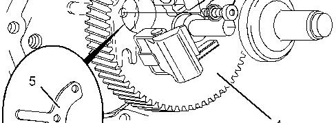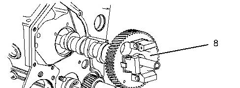5. Rotate camshaft gear (4) to align the accesshole in the camshaft gear with the hole for fastener (2).