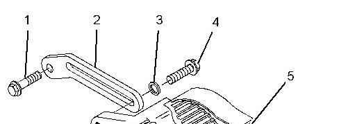 4. Remove bolt (2) and washer (3) from alternator (5).