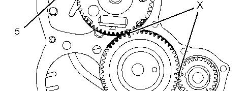 5. Rotate the crankshaft until timing marks (X) are aligned on the following gears: