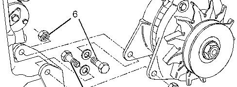 5. Remove washer (7) and nut (6). Remove bolt (8) and alternator (5) from the mounting bracket.