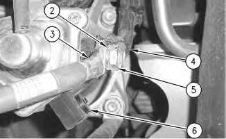 3. Install the screw and harnessassembly (6). Torque the screwto 3.6 ±1 N·m (32 ± 9 lb in). Install cable assembly (3). Install lock washer (2). Install harness assembly (4). Install nut (5). Torque nut (5) to 21 ±4 N·m (15 ± 3 lb ft).