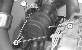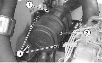 1. Release clamps (2). Remove air cleaner cover (3) from air cleaner housing (1) .