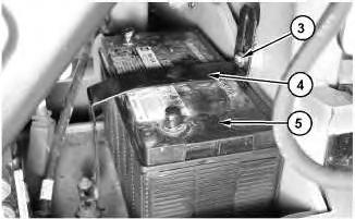 4. Remove nut (4). Disconnect positive cable (5) from electric starting motor (3) .