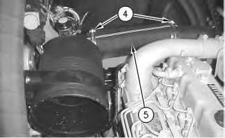 3. Connect hose (5). Tighten clamps (4) to a torque of 4.5 ± 1 N·m (40 ±9 lb in).