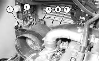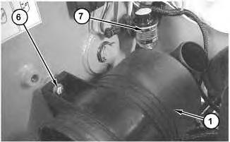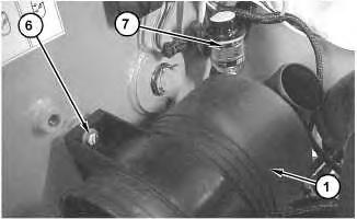 4. Remove bolts (6). Remove air cleaner housing (1) .