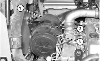 1. Release clamps (3). Remove air cleaner cover (2) from air cleaner housing (1) .