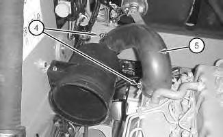 3. Loosen clamps (4). Disconnect hose (5) .