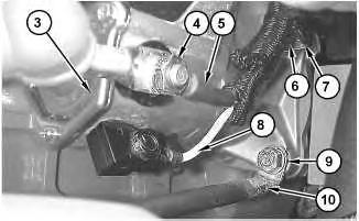 3. Connect negative cable (10) to electric starting motor (3) and install nut (9). Tighten nut (9) to a torque of 50 ± 6 N·m (37 ± 4 lb ft).