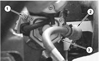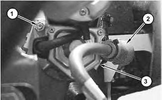 3. Slide boot (2) away from the positive terminal on electric starting motor (3) .