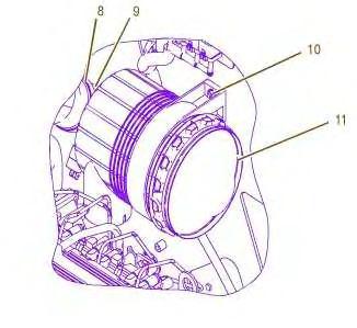 6. Loosen clamp (8) and disconnect hose (9). Remove bolts (10) and remove air cleaner housing (11) .
