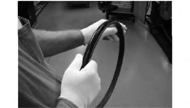 Starting on the left side ofthe seal ring, slightly stretch the rubber toric toaccommodate forthe seal ring ramp size. Apply sight pressure to aid in seating the rubber toric onto the seal ramp into itsfinal assembly position.