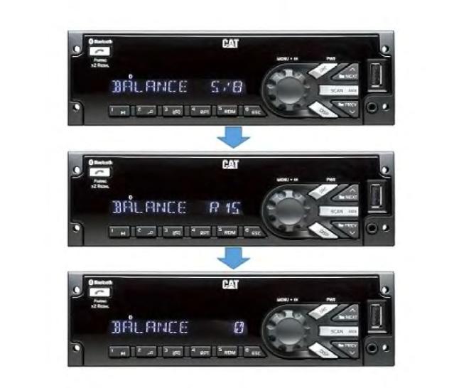 4. Press the volume knob to select the Balance option when it is displayed. If the Balance shows any other settings than 0, adjust the volume knob clockwise or counter-clockwise until Balance 0 is displayed. Then press the volume knob again to confirm the selection.
