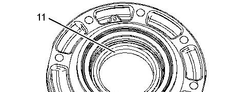 11. Apply Tooling (J) to cover (28). Apply Tooling (M) to bolts (27). Position cover (28) and install bolts (27). Tighten bolts (27) to a torque of 50 N路m (37 lb ft). Install yoke (29). Install the O-ring seals that are on the centering ring. Install the centering ring and ring nut (30). Tighten ring nut (30) to a torque of 190 N路m (140 lb ft).