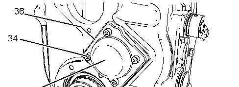 17. Apply Tooling (J) to cover (35). Apply Tooling (M) to bolts (34). Install bolts (34). Tighten bolts (34) to a torque of 23 N路m (16 lb ft).