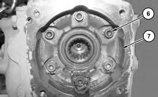 5. Remove bolts (6). Remove flange (7).