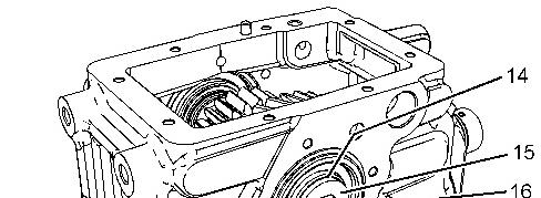 23. Install shims (14) and washer (15). Apply Tooling (E) to bolt (16). Install bolt (16). Tighten bolt (16) to a torque of 139 N路m (103 lb ft).